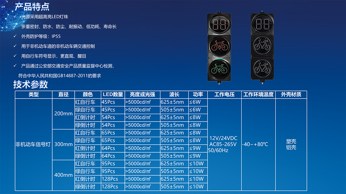 红绿双色非机动自行车带倒计时二单元交通信号灯